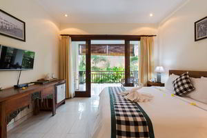 4 Superior rooms with King size bed and furnished with combination Balinese, antique and modern touch designed guest easily can access to the main swimming pool from terace through stepping down which connected with a path way along the garden.